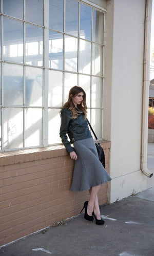 J.O.A. Sweater Skirt is relaxed, easy to wear, and totally on-trend. Put this sweater skirt on and you'll be set for the colder season ahead. This super cozy sweater skirt features a knit body, a flared design, and an elastic waistband for the perfect fit. Pair it with a sweater for a festive look you'll want to wear from fall to winter. Fabric is 50% Wool, 50% Nylon. Dry clean only. Made in China.