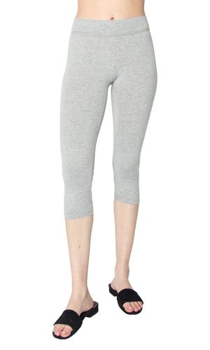 A true essential basic, the Heavy Cropped Legging by designer LAmade is a must have. These staple leggings feature a cropped midi length with a cotton blend fabric.  The leggings have the perfect amount of stretch so they are stylish and also comfortable.  The cotton blend fabric is soft adding to the comfort factor.  Available in Black and Heather Grey.  Model is 5'9" and wearing a size Small.  Fabric is 47% Cotton, 47% Polyester, 6% Spandex. Made in the USA.  Hand wash cold, lay flat to dry.