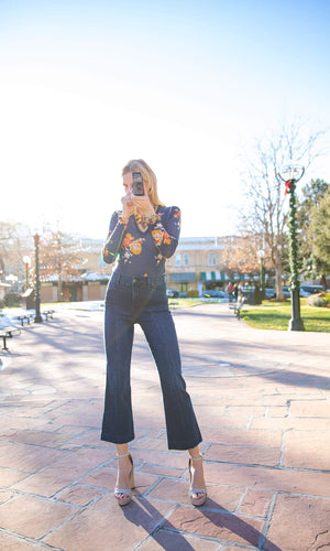 Fall in love with flare with the Camille Seamed Kick Flare Denim by Level 99 which features a wide leg with a distinctive center seam in the front. Â The jeans feature a 4 pocket style with a button front zip closure. Â Available in Glenbrook a deep blue wash. Â A great retro style with the combo of the deep blue color and the flare leg style. Â Fabric is 55% Cotton, 23% Rayon, 20% Polyester, 2% Spandex. Â Lining (interior pockets) is 97% Cotton, 3% Spandex. Made in China. Â Machine wash cold separately inside out, gentle cycle with similar colors only. Tumble dry low, gentle cycle. Â Model is 5'9" and is wearing a size 26. Fits true to Level 99 sizing.