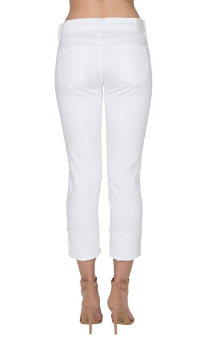 We have Level 99's best white distressed jeans. Level 99's Morgan Slouchy Straight Denim style are a slimmer version of the classic boyfriend jean. One should wear these straight leg jeans relaxed, low on the hips, and cuffed at the ankle. They are classically designed with five pocket construction, belt loops, and a button front fly. The distressed details complete that edgy look. You will be able to mix and match these jeans with just about anything. Make these distressed jeans your weekend staple. Available in First Mate (white with blue contrast patches). Fabric is 94% Cotton, 4% Elasterell-Poly and 2% Spandex. Machine wash cold on gentle, inside out, tumble dry low. Made in USA with imported fabric and trims.