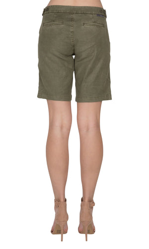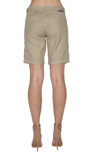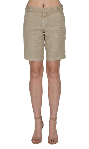 Level 99 has created the Shannon Walking Bermuda short to make for the perfect summertime must have. You will look classy in the Shannons that come in two colors; available in Pickle (army green) and Perfect Tan. These tailored Bermuda shorts have small details like the waist button tabs and hook and bar closure complete with two back and side pockets. Fabric is 51% Linen, 46% Tencel Lyocell, 3% Spandex. Machine wash cold on gentle, inside out, tumble dry low. Specs: Rise- 10", Inseam- 9 3/4". Made in China.