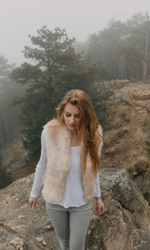 • FEATURES: fitted vest, faux fur, sweater vest, blush, grey, love token, designer vest, vintage style, fall fashion, fall vest, faux fur, fur front,