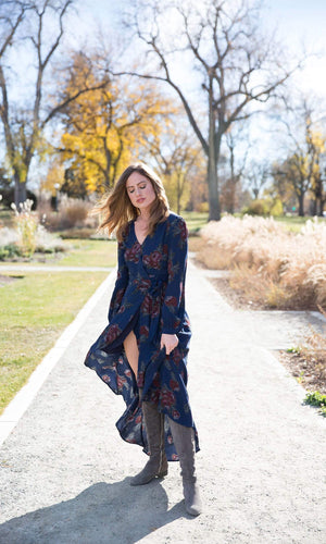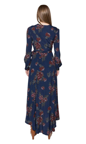 This fabulous Isabel wrap maxi dress by ASTR in a floral print is deliciously boho as well as romantic. This flattering designed dress features modern details such as surplice v neck and hidden side snap and button closure. The Isabel is a partially lined dress has a high/low hem to add that touch of romance to your wardrobe. Fabric is 100% rayon. Dry Clean.