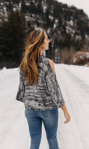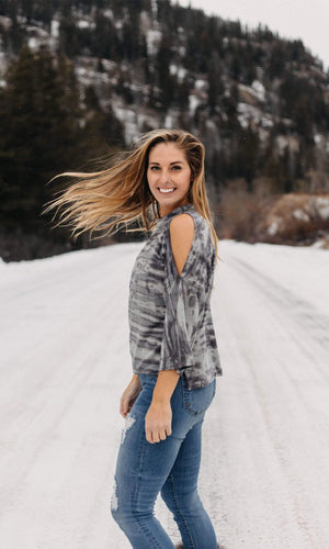 The Vail Cold Shoulder Sweatshirt by designer River + Sky incorporates one of the latest fashion trends with the cute cold shoulder mixed with an ultra soft sweatshirt style and fabric. We can't get enough of River + Sky's ultra soft fabrics. These pieces are not only stylish, but super comfortable and soft. Available in Excalibur a multi color pattern with shades of grey and purple. Fabric is 95% Modal, 5% Spandex. Machine wash inside out, lay flat to dry. Made in USA.