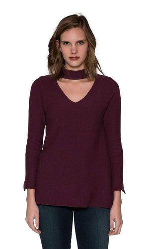 For an unforgettable look, slip on this Choker Neck Bell Sleeve Sweater by Caryn Vallone. A chic choker highlights the V-neck of this textured knit sweater. There are bell sleeves that provide a stylish finish to this top. Included with this relaxed fit sweater is a high low hem that hits low on the hip. Pair this sweater with denim jeans or patterned tights. Fabric is 100% Cotton. Hand wash cold. Lay flat to dry. Made in China.