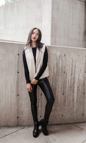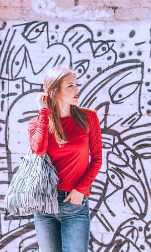 Make a statement with the not so basic tee with statement sleeves called Miss.  It's one of designer Velvet by Graham & Spencer's latest additions to their best-selling gauzy whisper collection featuring a light, stretchy cotton fabric.  The Miss features a classic tee style, but with ruched sleeves giving it a very distinctive look.  It's a great top to layer under vests for an added statement.  Available in Black, White or Power (red).  Fabric is 93% Cotton, 7% Elastane.  Machine wash cold, tumble dry low.  Made in USA.