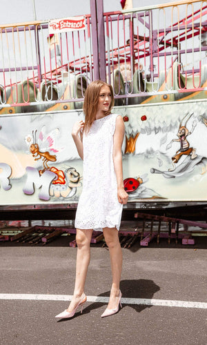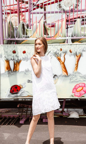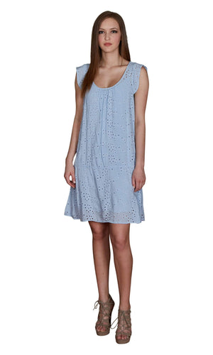 Velvet by Graham and Spencer has made the Airlina your perfectly pretty sundress for your next garden party or summer event! It's lightweight and feminine with floral inspired embroidered eyelets. It is fully lined with a detachable slip. The Airlina features a scoop neck with a dropped waist and capped sleeves. It is made from soft rayon and is available in Billow (light blue) and White. Grab this lovely summertime favorite for your next outing. Machine Wash. Fabric is 100% Viscose. Measures 36 1/4" long, from 1" above the shoulder. Made in the USA