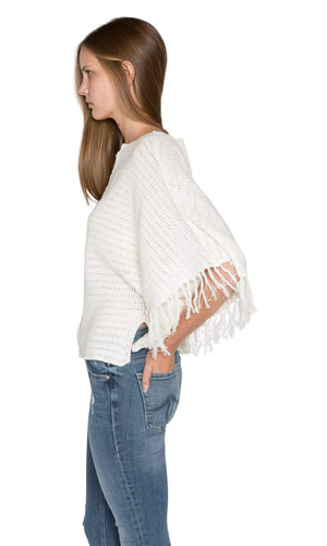 This laid back cotton crochet top from Velvet by Graham and Spencer adds some serious retro feel to your wardrobe. This sweater is stylishly adorned with crochet fringes on the sleeves. Also accenting this top with a funky boho vibe is a lace up embellishment on the front. Other features to this distinct design top include a reverse seam down the front and back. Split side seams offers a great silhouette. Measures 22 1/2" long, measured from the center back. Fabric is 100% Cotton. Dry clean recommended. Made in China.