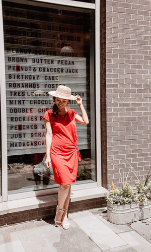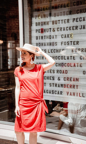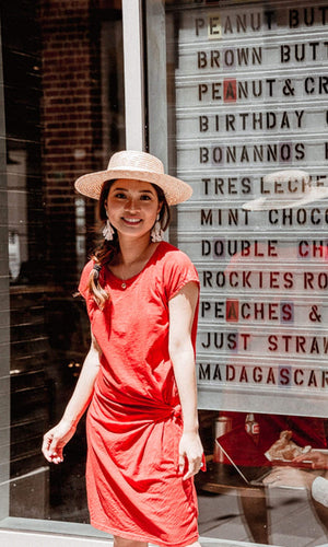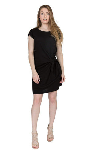 Your classic shirt dress style never ooked so good in Velvet by Graham and Spencer Gussie's Cotton Slub Tie Dress. This is a beautiful classic shirt dress with a twist a tie on one side that is perfect for dressing up or down with sandals or heels. The comfy side tie dress has a figure-flattering shape that gives this dress a feminine look. It will flatter your every move. Summer can't wait to get started for you in this cap sleeve dress. Available in Black and Crimson (Red). Fabric is 100% Cotton. Machine wash, tumble dry low. Measures 36 5/8" Long, measured from the shoulder. Made in USA.