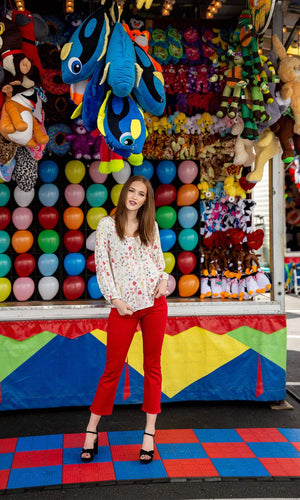 We can't get enough of floral prints and the Molina Spring Floral Peasant Top is the perfect way to elevate your boho wardrobe. Designer Velvet by Graham & Spencer's Spring Floral collection is showcased with the Molina blouse with a flared peasant sleeve that is gathered at the cuffs and a wide v neckline in front. The body of the top features a loose boho style and the back features a keyhole closure. Available in Somerset a multi-color floral pattern on a white background. Fabric is 100% Viscose. Dry clean recommended. Made in USA.