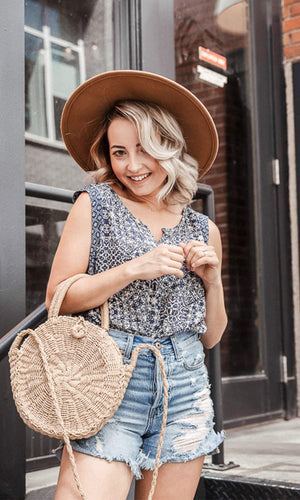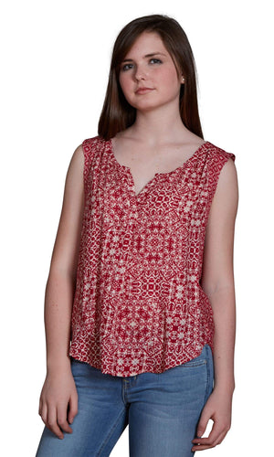 Velvet by Graham and Spencer created the Smilo Casablanca Print Tank Blouse. Part of designer Velvet's Casablanca Print collection. A great vintage style print, the casablanca print is trimed with a contrasting pattern. Loaded with details from the slits at the shoulders, accent v neckline, a gently shirred back yoke and a curved high/low hem.  Available in Red / Cream or Navy / Cream.  Fabric is 100% Viscose.  Hand wash cold, dry flat.  Made in the USA