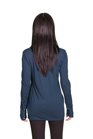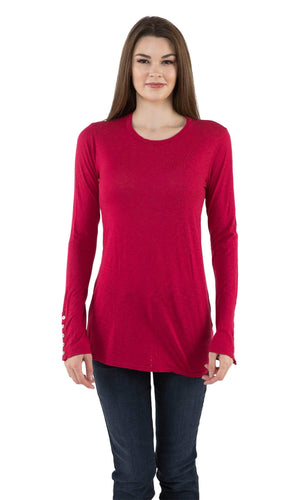 We are all about tunics this season and the Suella tunic top by Velvet by Graham and Spencer is another great addition. It looks perfect with leggings and boots. Complete with long sleeves and contrasting grey mother-of-pearl buttons at the cuffs, this top is stylish and comfortable. The fabric is a slub which gives it added contrast and it is a cotton/modal blend which makes it ultra soft. Available in Angelica (grey), Eggplant (purple), Hibiscus (red). Fabric is 50% Cotton, 50% Modal. Machine wash cold, tumble dry low. Made in USA.