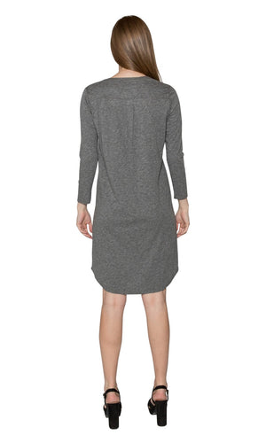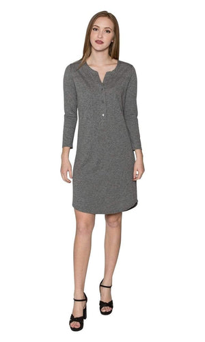 Velvet by Graham and Spencer Vavaya Cotton Slub Shirt Dress. Keep it cute and casual in this solid long sleeve shirt dress. Features soft and stretchy jersey knit fabric, long sleeves and double front breast pockets. It is unlined and has partial front button placket. Style this cute dress with a cable-knit cardigan, belt and boots, or style with leggings, a statement necklace and flats. Available in in Magic (Blue) and Medium Heather Grey. Fabric is 100% Cotton. Machine wash, tumble dry low. Made in the USA.
