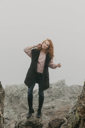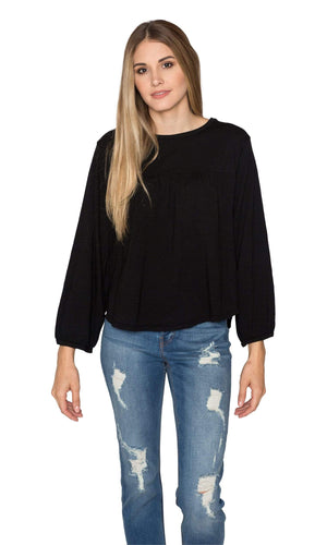 Velvet by Graham and Spencer has weaved their textured cotton slub into a beautiful peasant top. This soft pure cotton top will add a bit of feminine flair to your Bohemian style with its gathered seam at the bust line. It is the perfect balance of flowy, loose and comfort, yet can be a little dressier. This long sleeve blouse with cinched cuff around the sleeves will keep you warm in cooler weather. You will need to find a way to work this into your wardrobe, especially with all the color variations. Available in Aztec (blue), Black, Corset (pink) and Medium Heather Grey. Fabric is 100% Cotton. Machine wash. Made in USA. Measures 42 1/2" Bust at the armhole. Measures 21 1/2" Long, measured from the shoulder.