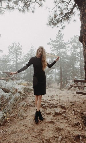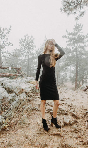 The Nev dress by Level 99 is a must have!   It is your classy yet very stylish little black dress.  Instant sophistication is what you will feel when you put on Level 99's Nev Long Sleeve Faux Suede Dress. Minimal effort, maximum impact.  Falling at the knee, it features a round neckline, long sleeves, detailed stitching around the sides of the dress creating that admirable designer look.  It is made from super soft faux suede that is ultra soft to the touch. Available in Black. Fabric is 53% Polyester, 38% Rayon, 9% Spandex. Machine wash cold, inside out, gentle cycle.  Made in China.