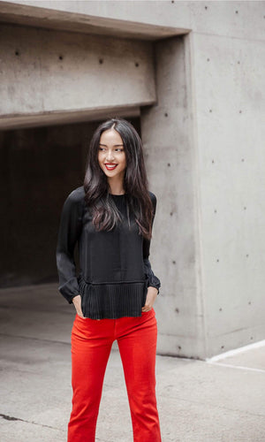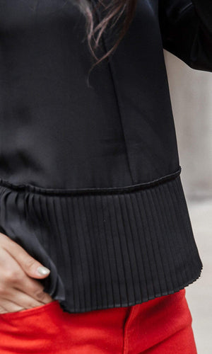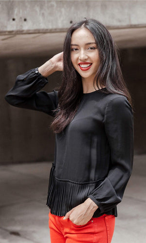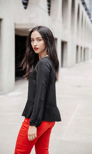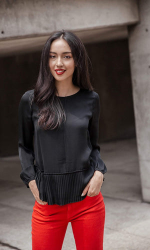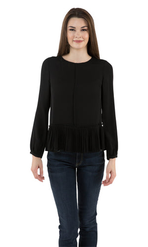 This beautiful shirt by Rebecca Taylor will never go out of style.  This simple but elegant pull over pleated top has numerous features including a jewel neckline and a keyhole closure in back.  This meticulously crafted top comes with center front and back seam details, bracelet sleeves and button cuffs. The graceful accordion-pleated hem makes this top a beautiful piece you'll turn to time and time again for more to elevate your look.  Approx. length: 21"L down center front, 22"L down center back.  Dry Clean. Fabric is 100% Silk. Lining is 100% Polyester. Made in China.