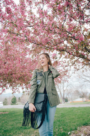 Velvet's latest addition to their best-selling Army Jacket collection, the Andreea jacket has the construct of their best-selling Ruby Army Jacket with added embellishments of a series of hip patches. The body of the jacket features an adjustable drawstring tie at the waist for a flexible fit and style. The long sleeves feature a snap closure and can be rolled up. The front of the jacket has a series of flap pockets including a snap closure or a zipper closure option on the lower pockets. Complete with epaulets that snap at the shoulder, this Army jacket is a style must have. Available in Forest (Army Green). Fabric is 100% Cotton Twill. Machine wash, tumble dry low. Made in China.