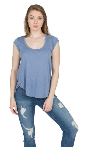 If you love Velvet's amazingly soft fabrics, the Briley Tee, which is part of the Lux Slub collection is one of their latest additions and a perfect go to tee for spring/summer. With a cap-sleeve and a loose style fit along with a lower hem in the back of the tee, this top is easy to love. It also has a wide scoop adding to the loose style. Available in Black, White and Daybreak (Blue). Fabric is 50% Cotton, 50% Modal. Machine wash, tumble dry low. Made in USA. Measures 24" long from the shoulder.